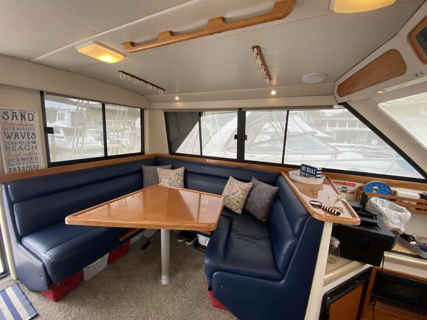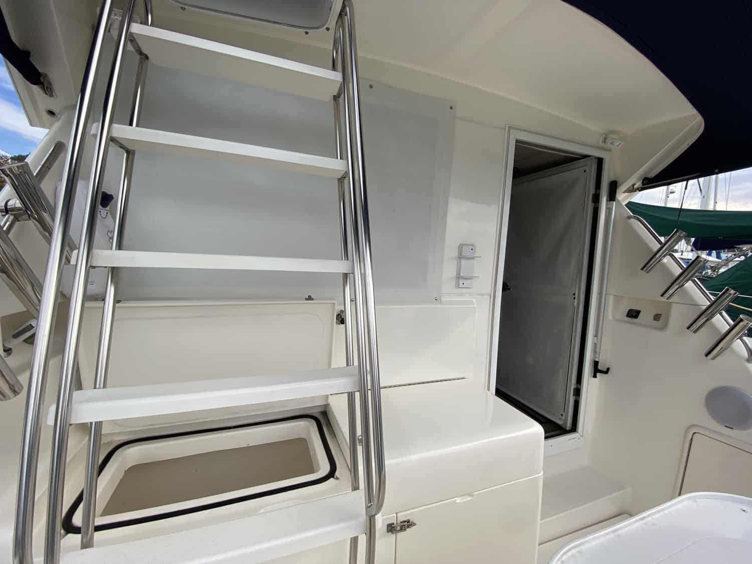 Radar, Chart plotter networked to TV in Salon. TV custom mounted to be viewed from cockpit or Salon.